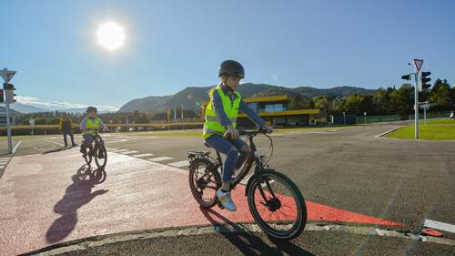 Üben in einem geschützten Umfeld unter modernsten Bedingungen. Das links Abbiegen, das richtige Verhalten im Kreisverkehr, das Kreuzen einer Radfahrüberfahrt sowie das Überqueren eines Zebrastreifens als Fußgänger – alles kann geübt werden.